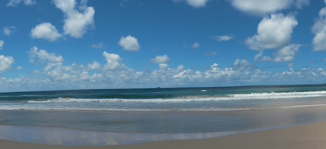 Byron Bay is said to have a special vibe. It was originally called “meeting place” (Cavvanbah) in aboriginal language, indicating that it was a place to gather. It is a sacred place to Aboriginals and the spirits are said to proceed from Mt. Wollumbin, an ancient volcano, which erupted 23 million years ago and which can be seen from many points in Byron Bay. It was not an aboriginal settlement, because they believe that the area’s spirit is too strong and therefore people would go crazy if they lived here. That seems to be true, as there are loads of crazy people to be found in Byron Bay! It has been a hippie haven ever since the 70s and I imagine it could be quite similar to Goa… Apart from that there are plenty of surfers (pro’s and wannabes) around. Even though locals keep telling me that I must learn surfing I have yet to try it. But 1) I don’t have enough time and 2) one surfer has been killed and one severely injured as a result of two shark attacs in the past week. I was brave enough to join a sea kayak tour by the local “Go Sea Kayak” company, though. As opposed to NZ the sea was calm and warm. We went along the shoreline to the more secluded bays and saw sea turtles popping up their heads as well as a small group of the resident bottlenose dolphins (including a baby!). THIS truly is a sacred place.